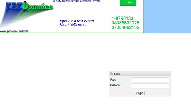 This tutorial assumes you have a domain name registered through KEKdomains, and starts from the login page.
