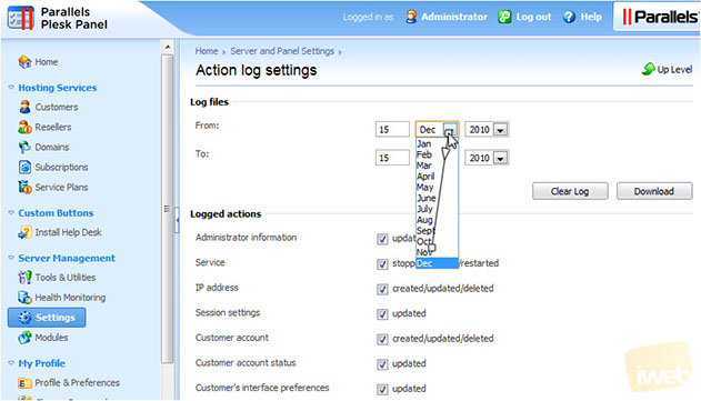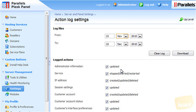 This completes the demonstration. You now know how to change the action log settings in Plesk.