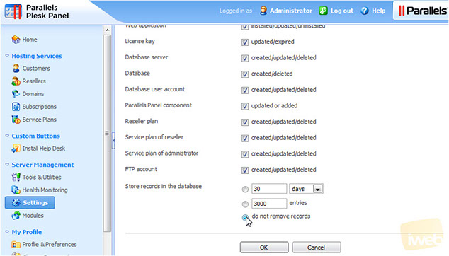 6) Below, select all actions you want Plesk to log.