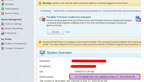 # cat /usr/local/psa/version 9.5.2 CentOS 5 95100504.10
