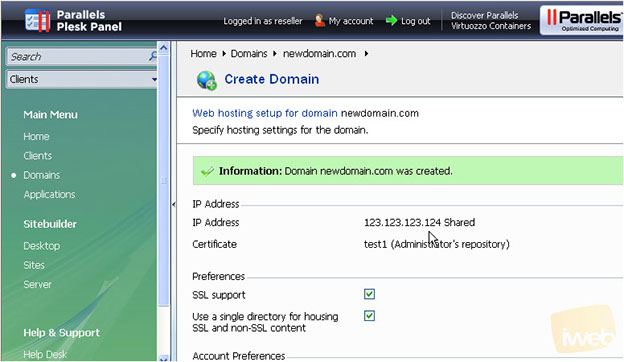 We're done! The new domain has been created and the hosting has been configured for it.