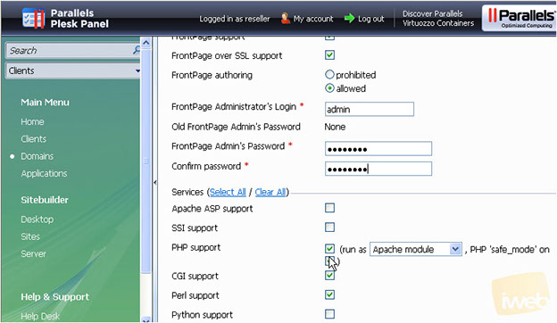 9) Set the permissions you wish to grant the person you'll be giving the Plesk access to for the selected domain.