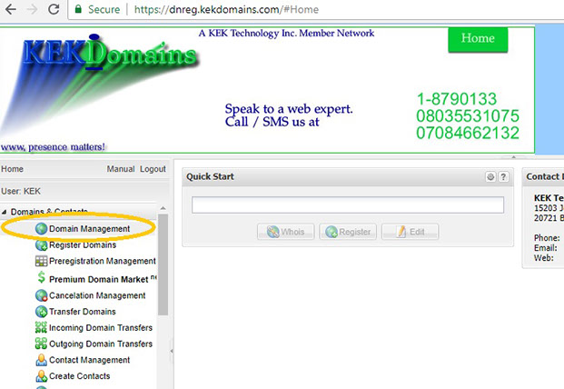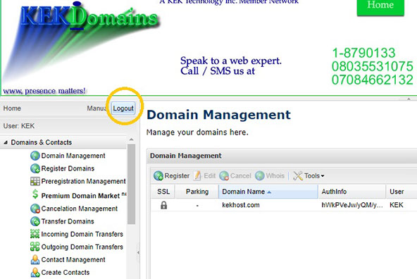 This tutorial assumes you have a domain name registered through KEKdomains, and starts from the login page.