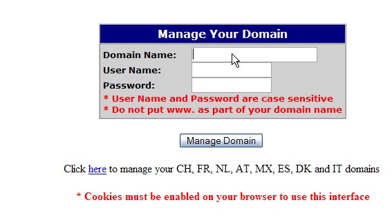 This tutorial assumes you have a domain name registered through OpenSRS, and starts from their login page.