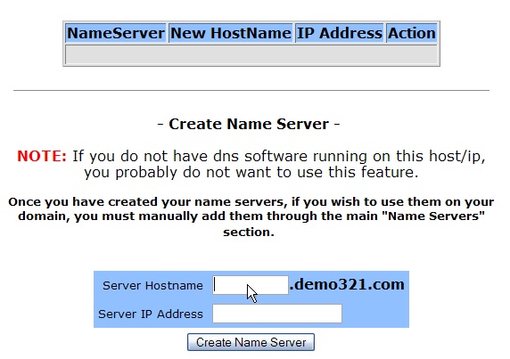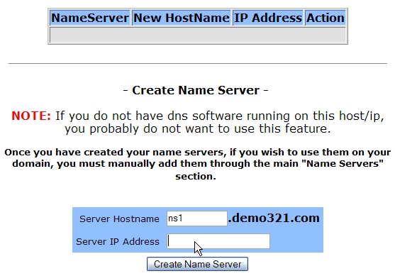 8) Then click Create Name Server.