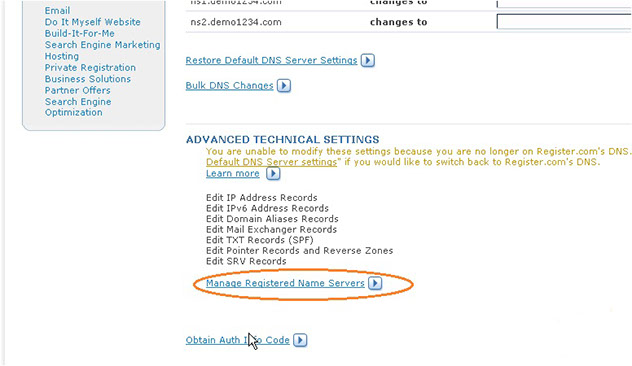 5) Then click Manage Registered Nameservers here at the bottom of the page.
