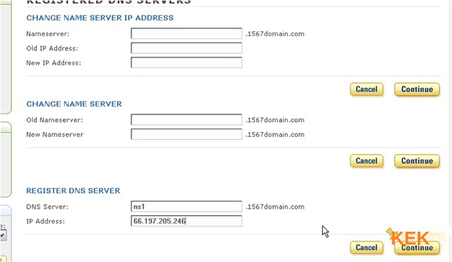 7) ..... and the new nameserver's associated IP address in these boxes (the IP address would have been provided to you by your web host).