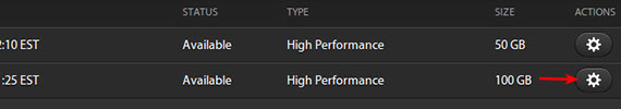 2) Hover over the 'Action' icon related to your volume (on the far right).