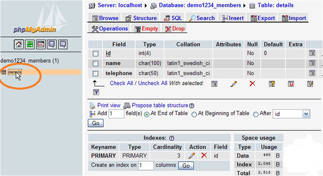 This tutorial assumes you've already logged in to phpMyAdmin. These are steps on how to delete fields from database tables.