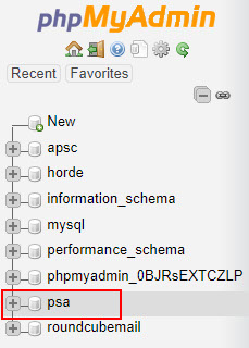 3) Select psa database from the list: