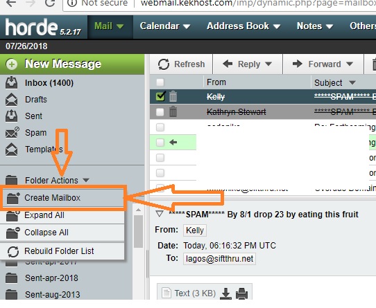 This tutorial assumes you've already logged in to Horde webmail. Now let's learn how to create folders.