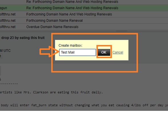 3) Enter the Name (for example, Test Mail ) for the new folder and click OK as displayed below to save.
