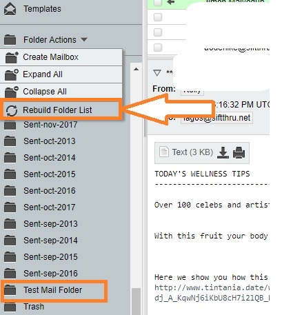 4) Click on Rebuild Folder List to refresh the folder list.