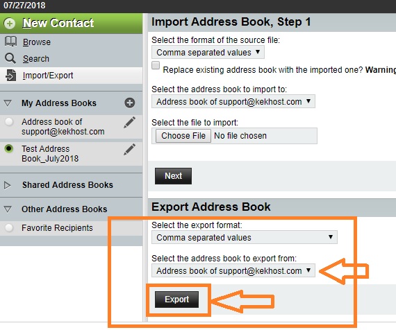 This tutorial assumes you've already logged in to Horde webmail. These are steps to learn how to export contacts (in address Book) from Horde Webmail.