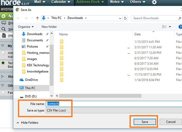 4) Locate the folder on your computer you wish to export the address book to, then click Save.