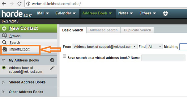 This tutorial assumes you've already logged in to Horde webmail. These are steps to learn how to import contacts (address Book) from other programs into Horde Webmail.