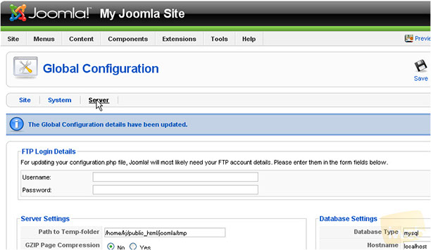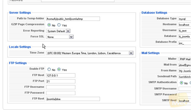 This is where you can change your Server, Locale and FTP settings. In addition, you can also modify your Database and Mail settings.