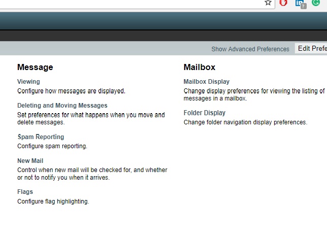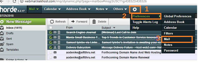 1) Click on Settings (1) Icon (Symbol) next to (OTHERS Menu) > Preferences (2)> Mail (3) as displayed below.