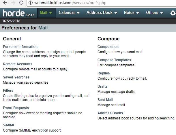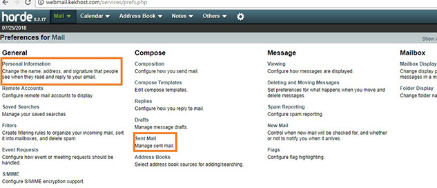 This tutorial assumes you've already logged in to Horde webmail. These are steps to learn how to personalize your mail account and Sent Mail Folder.