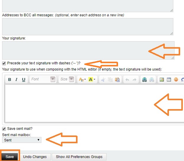 8) If Unchecked, check the "Precede your text signature with dashes box".