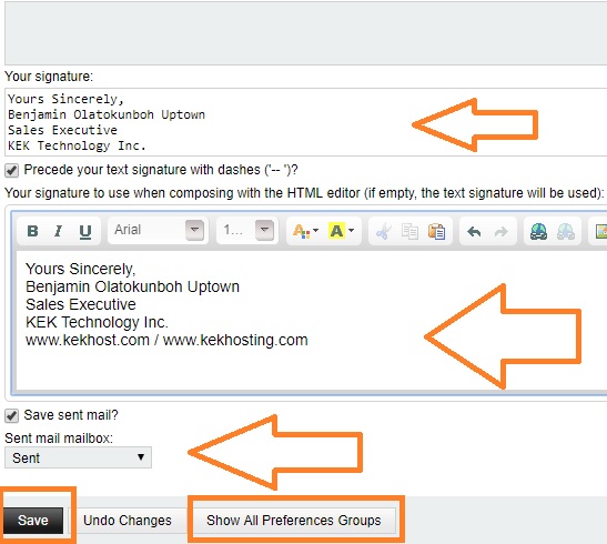 7) Scroll down and insert Your Signature such as Your Sincerely or Truly. Then enter the rest of the salutation include your fulll name and Job Title, Company Name and website address. Here is an example: