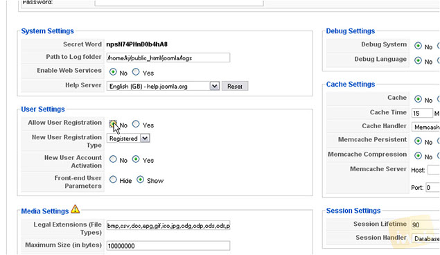 4) Next to Allow User Registration, click No.