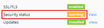 WordPress Toolkit can enhance the security of WordPress instances (for example, by turning off XML-RPC pingbacks, checking the security of the wp-content folder, and so on). You can see an instance’s security status on its card, below the screenshot of the website. If you see “warning” or “danger” next to “Security status”, we recommend that you secure your instance.