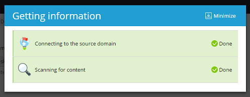 Plesk will try connecting to the source website and scanning it for content. If the connection is successful, select one or more objects of the following types types to import: