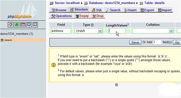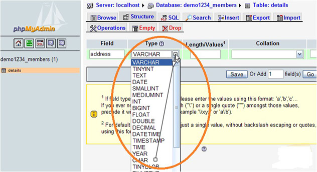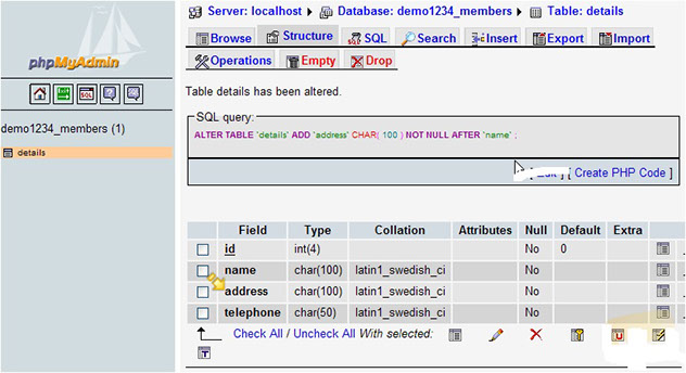 This tutorial assumes you've already logged in to phpMyAdmin. These are steps to learn how to insert fields into database tables.