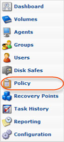 2) Click on "Policy" in the Main Menu to access the "Policies" pag