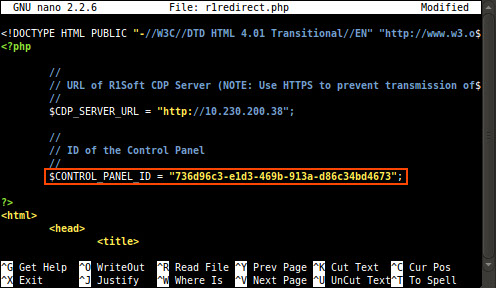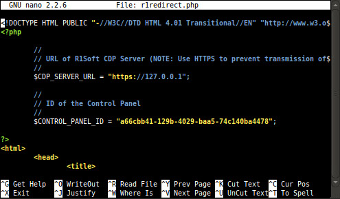 9) Open the file named r1redirect.php in your favorite Linux text editor - vi, emacs, pico, or mcedit.