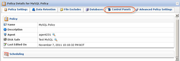 4) Choose "Control Panels" tab in the Policy Details pane.