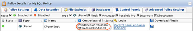 Replace the ID with the ID of your Control Panel Instance. For example, 736d96c3-e1d3-469b-913a-d86c34bd4673.