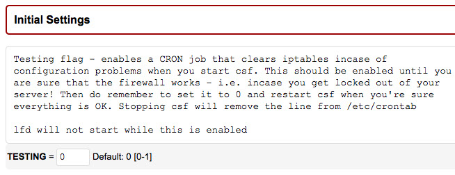 Go back in the "Firewall Configuration ("csf - ConfigServer Firewall" section)