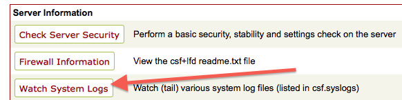 You can monitor the firewall activity by clicking the "Watch system Logs" button on the ConfigServer Security Firewall main page.