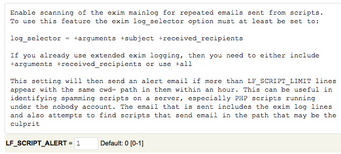 CSF can help you to secure spam abuse vector and detect suspicious email activities.