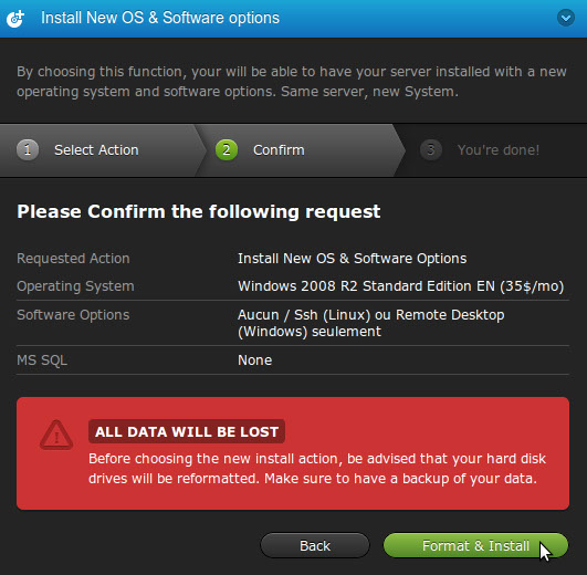 8) Make sure the right options are selected and click on the "Format & Install" button.
