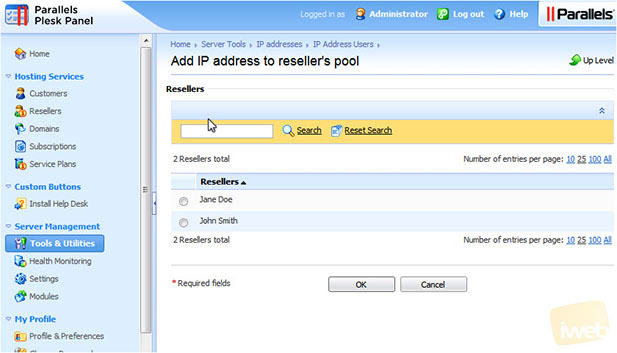 6) Choose a Reseller from the list, then click OK.