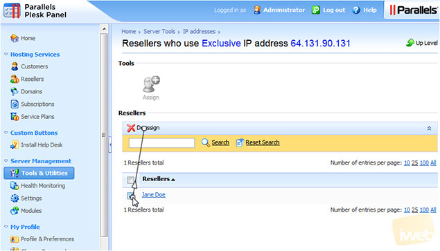 7) To deassign this IP address from this reseller, click the checkbox, then click Deassign.