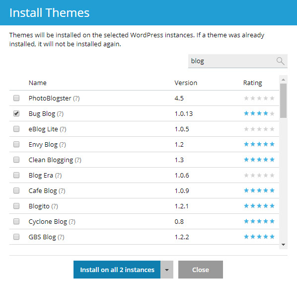 3) Select the WordPress instances on which you want to install the theme.
