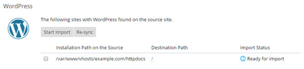 At any time after you have migrated an application, you can migrate it again by selecting the corresponding checkbox and clicking the Re-sync button. Note that this will overwrite any changes you may have made to the installation on the destination server.