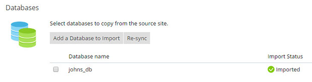 At any time after you have migrated a database, you can migrate it again by selecting the corresponding checkbox and clicking the Re-sync button. Note that this will overwrite any changes you may have made to the database or its contents on the destination server.