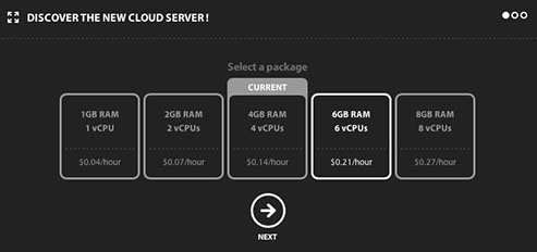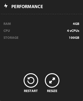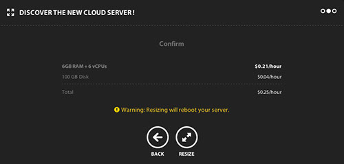Upgrading the CPU and/or RAM on your cloud server is simple and fast. It is important to note that resizing your cloud server will automatically reboot it, rendering it off-line for a few minutes. Once you are ready, follow these steps: