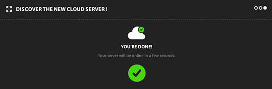 5) You're done! Once the reboot is complete and your server is back online, you will see a confirmation screen. Click the checkmark to go back to the Control Center and access your Cloud server.