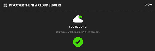 6.You're done! Once the reboot is complete and your server is back on-line, you will see a confirmation screen. Click the checkmark to go back to the Control Center and access your Cloud server.
